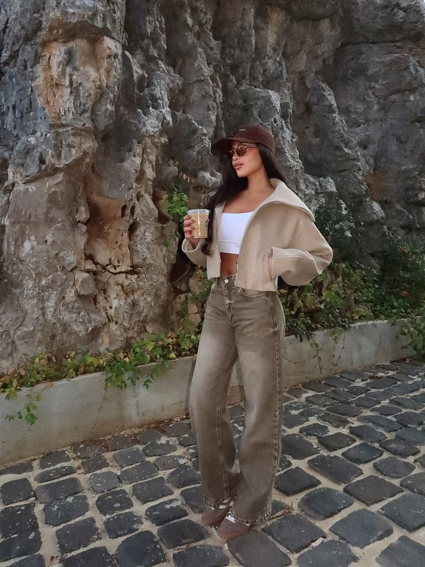 The Hazel Jacket is a beige, short-length piece designed with a draped collar that enhances its refined silhouette. Crafted to combine style with versatility, this jacket effortlessly elevates both casual and formal outfits. Its tailored fit and soft neutral tone make it an essential addition for those seeking a polished yet contemporary look