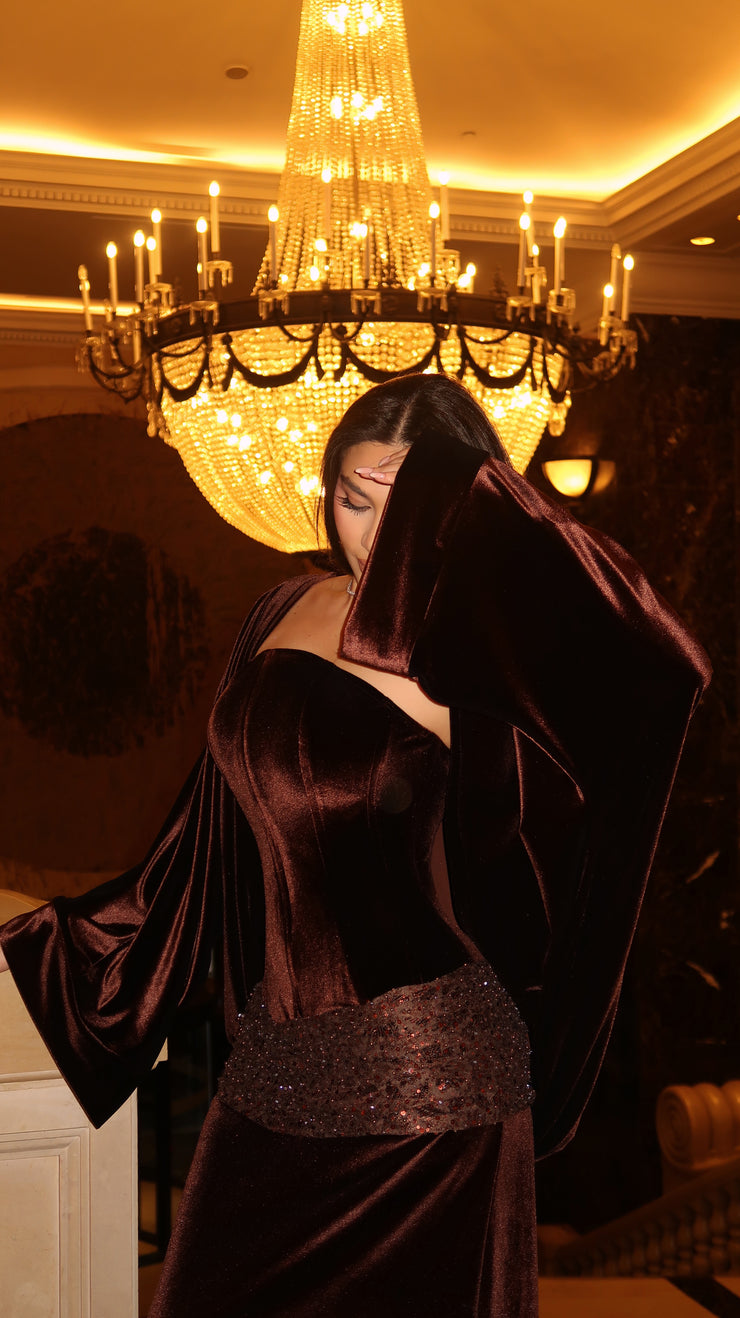 LORA BROWN VELVET ABAYA
